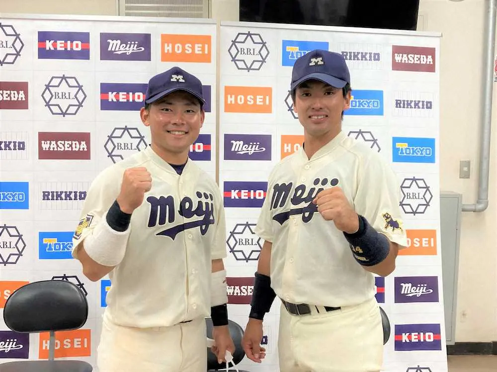 明大1番の村松主将が7―1の8回2死一、二塁でダメ押しの右前適時打を放つなど2安打2打点。2四球も選んで4出塁とリードオフマンとしての役割を十分に果たして「調子は良くないが、つなぐことができて良かった」と笑顔で振り返った。これで開幕戦で東大と引き分けた後は6連勝。リーグ連覇に向け「先頭に立って(チームを)引っ張りたい」と力を込めた。