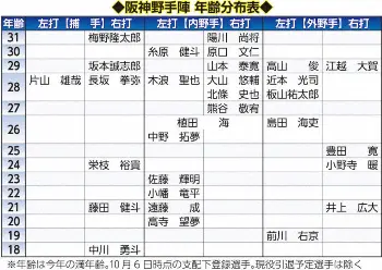 阪神野手陣の補強ポイントはズバリ、「右打者」だ。現状のレギュラーで右打者は、捕手を除けば大山のみ。特に内野手に25歳以下の右打者不在と層が薄い。とはいえ、ポジションにこだわらず、強打の右打者に照準を定めることが先決だ。