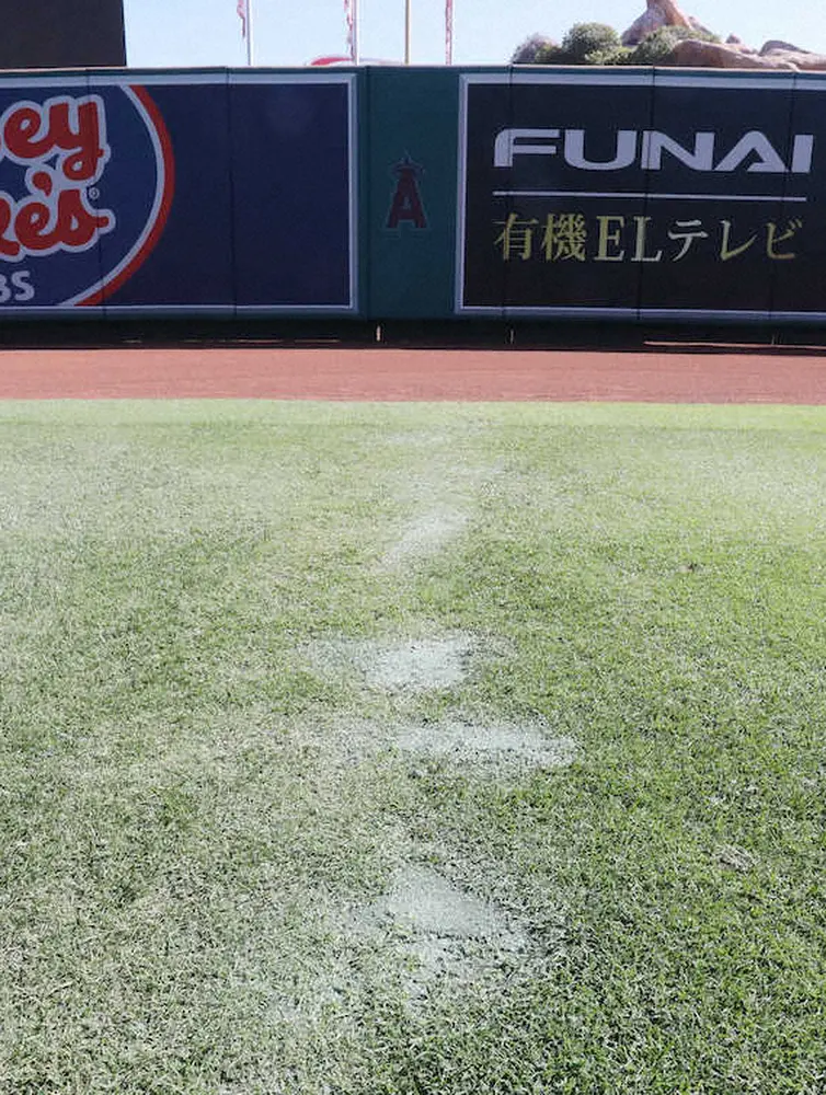 かつて巨人の桑田真澄がジャイアンツ球場の外野フェンス際を走り込んだことで、同様に芝がはげて「桑田ロード」と呼ばれたことは有名。太陽が照りつけるアナハイムには、栄光を地道に支えた「大谷ライン」がくっきりと残っている。(MLB担当・柳原 直之)