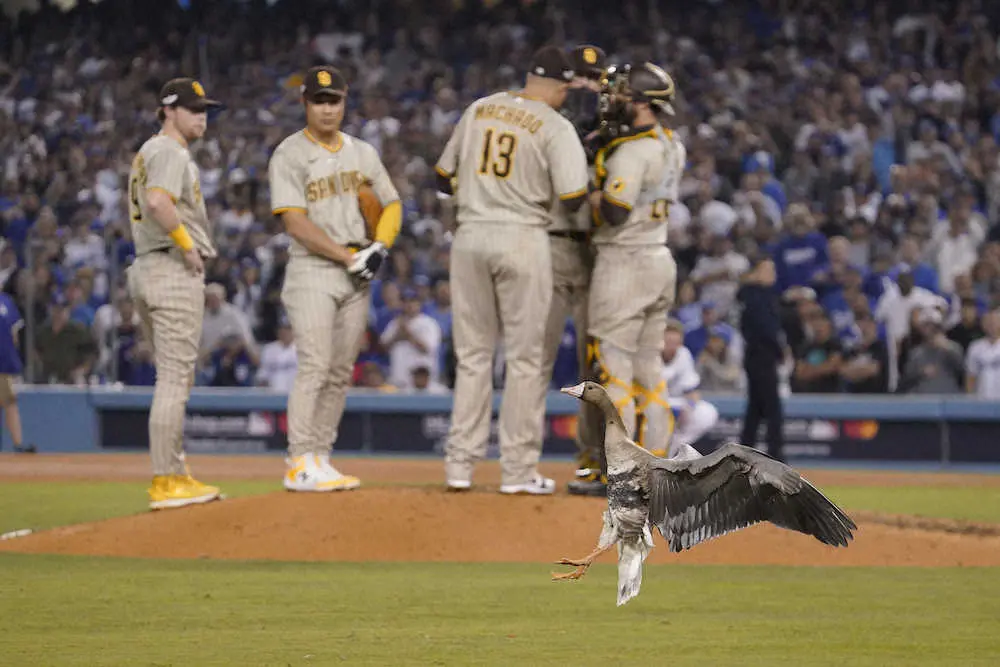 3-5と劣勢のドジャースの攻撃中だった8回裏、ガチョウがグラウンド上に鎮座。現地実況が爆笑する中、そのままプレーは続行され、ラックスが右前打。その後、パドレスの投手交代のタイミングで捕獲された。