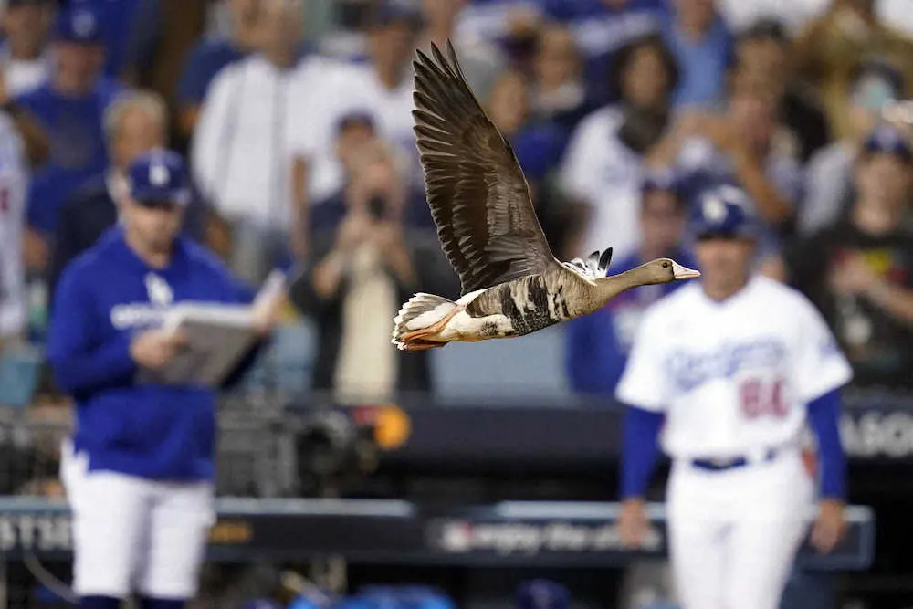 パドレス-ドジャースの試合中、グラウンドにガチョウが降り立ち、場内は大いに盛り上がる(AP) Photo by AP ドジャースタジアム ガチョウ鎮座もプレーは続行→捕獲、ネットではロッテ… ギャラリーで見る この記事のフォト 2022年10月13日の画像一覧 もっと見る 2022年10月13日の画像をもっと見る