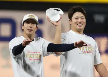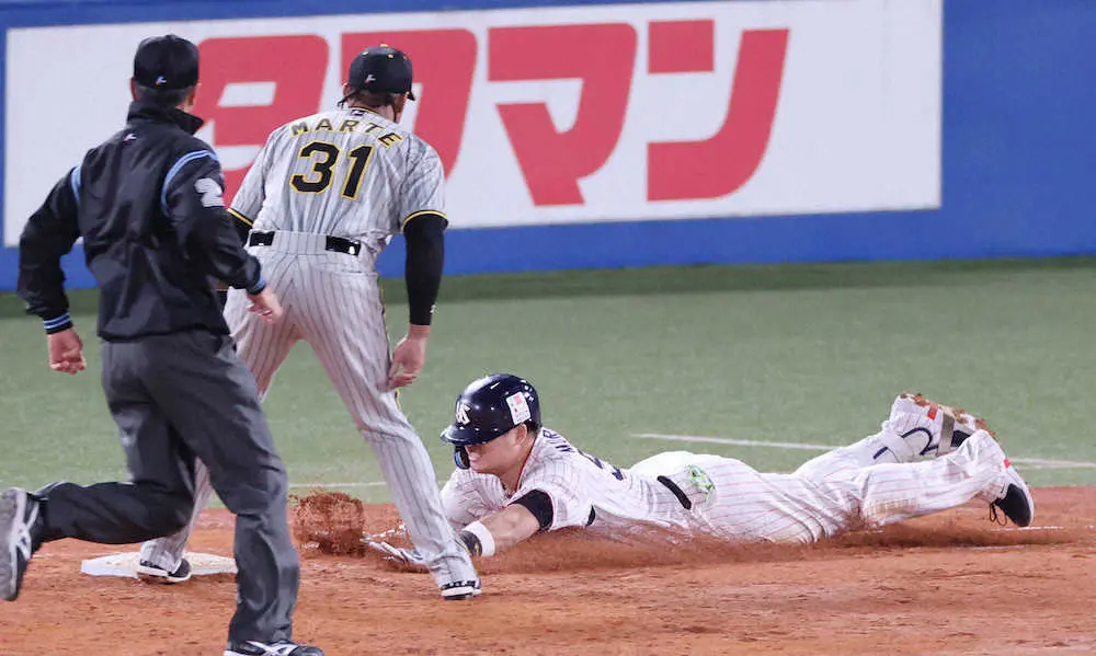セCSファイナル<ヤ・神>7回、村上(左)の投ゴロで、一塁にグラブトスし悪送球する浜地(撮影・椎名 航) Photo by スポニチ あぁ、マルテよ…阪神 失策から大逆転許す 7回の悪夢、今季リーグ最多86… ギャラリーで見る この記事のフォト 2022年10月14日の画像一覧 もっと見る 2022年10月14日の画像をもっと見る