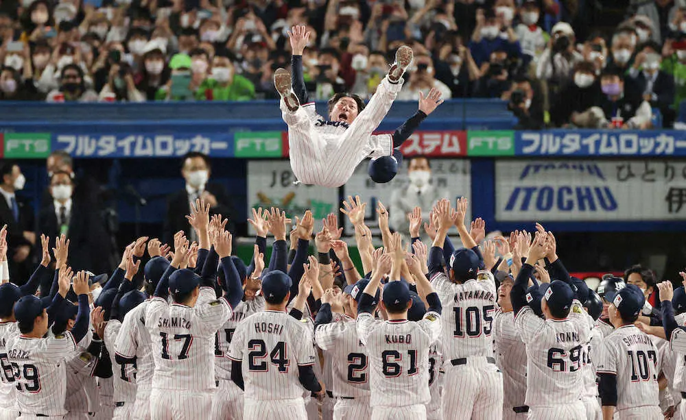 <ヤ・神>高津監督を胴上げする村上(撮影・沢田 明徳) Photo by スポニチ ヤクルト セ界初の2年連続無敗突破!パ・リーグ含めても79、80年近鉄以来… ギャラリーで見る この記事のフォト 2022年10月14日の画像一覧 もっと見る 2022年10月14日の画像をもっと見る