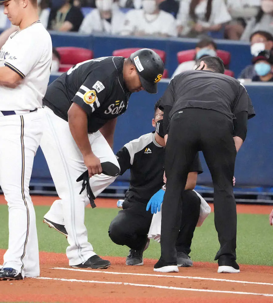 犠打の周東も二塁に進塁し、3番・柳田のボテボテの投ゴロの間に二走・周東は三塁へ。1死三塁で打席に立った4番・デスパイネは内角寄りのカットボールを詰まりながらも中前に運び2点目をもぎ取った。一塁ベース上でデスパイネは足を気にするしぐさを見せたが、そのまま塁上に残りプレーを続けた。