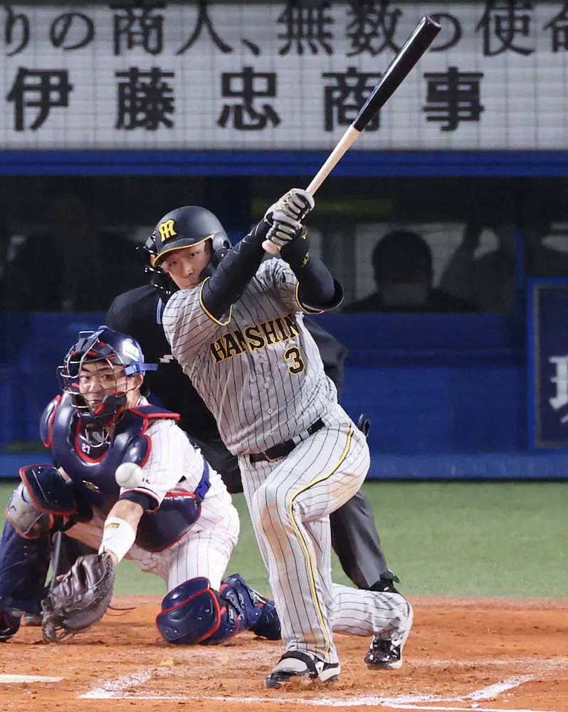 ▼阪神・大山「追加点が欲しい試合展開でしたし、どんな形でもいいのでランナーを還したいという思いで、必死に食らいつきました。抜けてくれてよかったです」