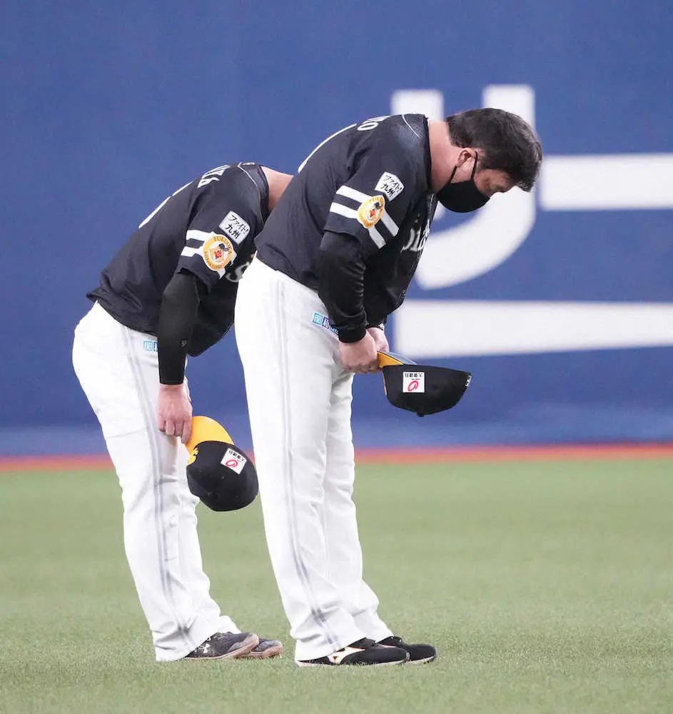 <オ・ソ> 日本Sを逃し、言葉を交わしながら挨拶に向かう柳田(右から2人目)と藤本監督 (撮影・後藤 大輝) Photo by スポニチ ソフトB 終戦後にライトスタンドのオリファンへ挨拶 ネット感動「素晴ら… ギャラリーで見る この記事のフォト 2022年10月15日の画像一覧 もっと見る 2022年10月15日の画像をもっと見る