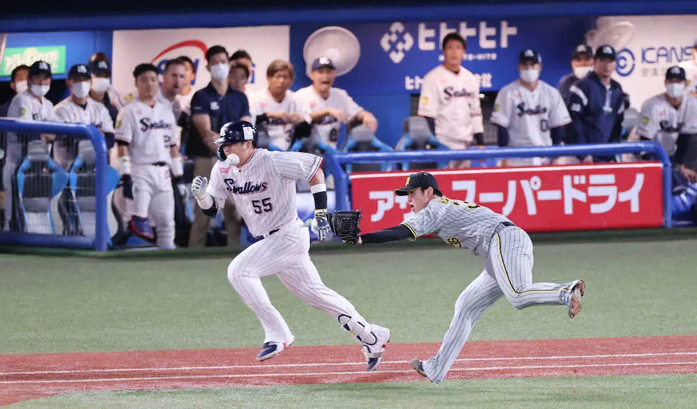 だが、悪夢は終わらない。宮本の四球後、2死満塁で村上という絶体絶命の場面を迎えながら、今季急成長した24歳右腕は真っ向勝負。6球目の渾身(こんしん)の直球でボテボテのゴロに打ち取ったものの、打球が弱すぎ、一塁のアウトはギリギリのタイミング。慌てた浜地のグラブトスが再び悪送球となり、右翼ファウルゾーンまでボールが転々とする間に走者が全員生還する信じられないプレー(記録は投前安打と失策)で一気に逆転された。まともな安打は一本も打たれないまま、一挙5失点。そこから再逆転する力は残っていなかった。