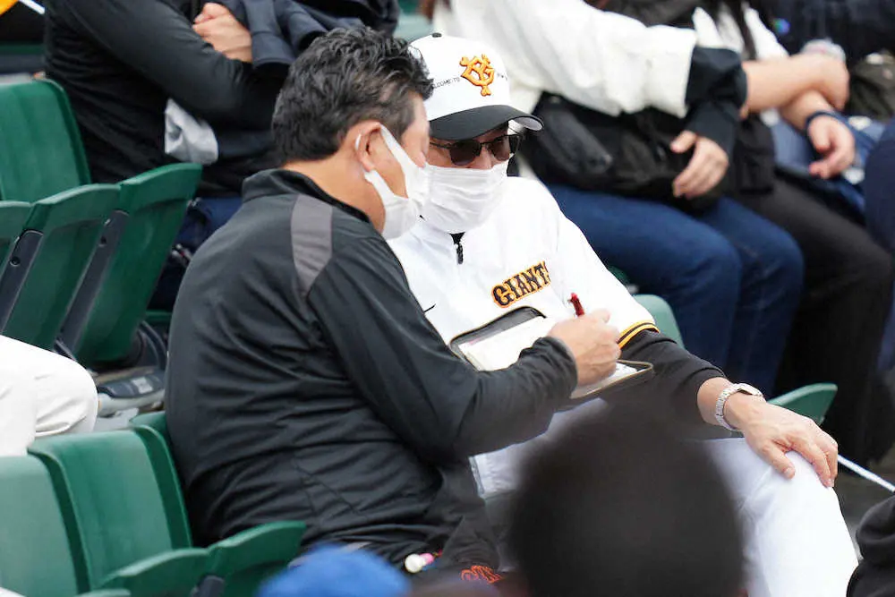 巨人の原辰徳監督(64)が15日、川崎市のジャイアンツ球場で行われた秋季練習で、1軍打撃チーフコーチに就任した大久保博元氏(55)と意見交換を行った。
