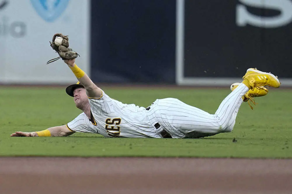 パドレスのジェーク・クロネンワース(28)が18日(日本時間19日)、本拠地で行われたフィリーズとのナ・リーグ優勝決定シリーズ(NLCS)第1戦に「5番・二塁」で先発出場。先発登板したダルビッシュ有投手(36)のピンチを救う“美技”を見せた。