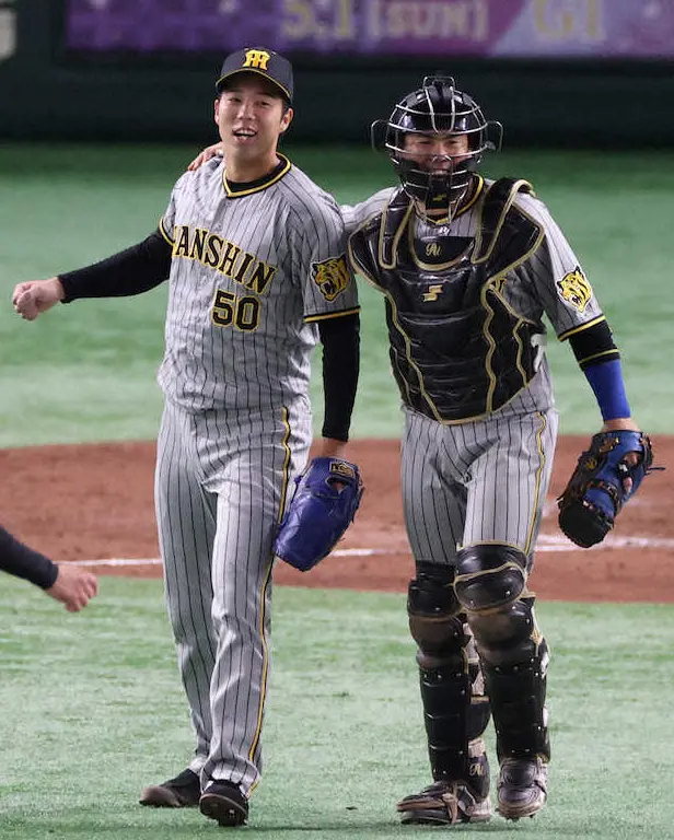 阪神では05年の藤川球児―矢野輝弘のバッテリー以来、17年ぶりの受賞。エース右腕は「梅野さんには本当に引っ張ってもらった。昨年、梅野さんからこの賞を獲ったことがないという話を聞いて“来年一緒に獲れたらいいな”と言っていたので、実現できて良かった」と感慨を込めた。