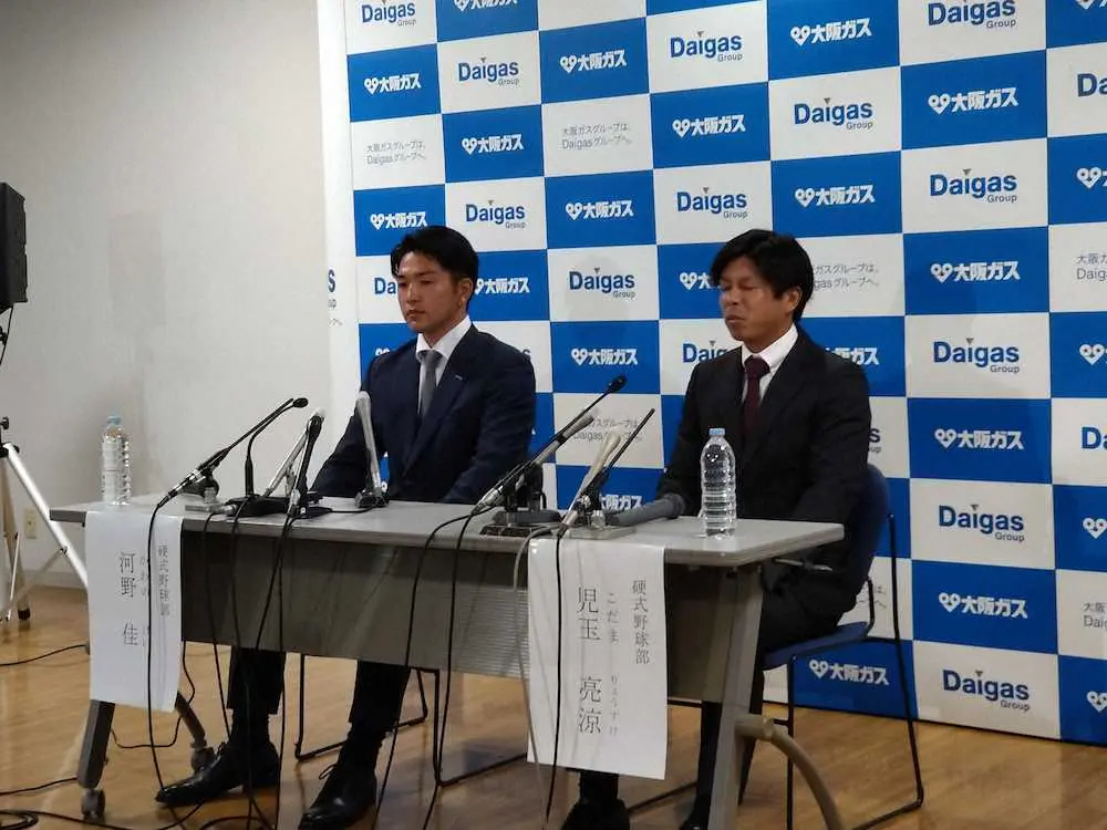 プロでの目標を色紙に書き、健闘を誓う大阪ガスの河野(左)と児玉(20日、西宮市の同社今津グラウンド・クラブハウス) Photo by スポニチ 【ドラフト会議】大阪ガスから、広島5位・河野「黒田投手のような」&西武6… ギャラリーで見る この記事のフォト 2022年10月20日の画像一覧 もっと見る 2022年10月20日の画像をもっと見る