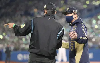 日本シリーズ<ヤ・オ1>初回、オスナの三塁線への打球に三塁塁審の土山はいったん両手を上にあげるがフェアに判定を変更(撮影・篠原岳夫) Photo by スポニチ 「フェア?ファウル?」 初回、オスナの微妙な当たりにファンも“論争” … ギャラリーで見る この記事のフォト 2022年10月22日の画像一覧 もっと見る 2022年10月22日の画像をもっと見る