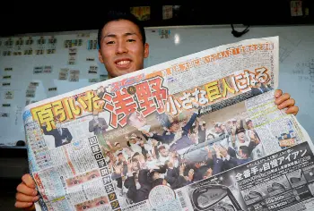 12球団最速の1位公言から、クジを引き当てた巨人は、熱い思いをすぐに届けた。大塚淳弘球団副代表、水野雄仁スカウト部長、岸敬祐担当スカウトがあいさつ。高松行きの航空券は3日ほど前に購入済みだったという。水野スカウト部長は「トリプルスリーを狙える。10年、20年の逸材だと思っている」と絶賛し「松井(秀喜)、岡本(和真)の後を追いかけてほしい」と成長を願った。