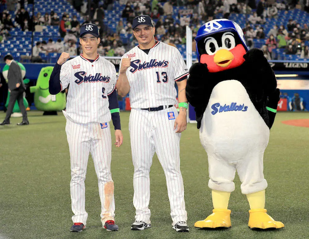 阪神との対戦となった今年のCSファイナルステージ(神宮)でも日本シリーズ進出を決めた第3戦の試合後セレモニーで楽しそうな笑顔の高津監督らに背中を押されて前に出るなどスタンドを沸かせた塩見。実際には3戦2発5打点のオスナがMVPに輝いたが、この日もそのオスナが4回の一発を含む3安打3打点と塩見を上回る大活躍を見せた。3回にダイヤモンドを一周している時は「ほぼほぼ、僕がヒーローだなと」と確信。「明日もチーム一丸頑張っていきます。明日はオスナよりもっと輝いて僕が確実に1位になれるように頑張っていきます」とおどけながらも悲願のMVP獲得へ向けてメラメラとライバル心を燃やしていた。