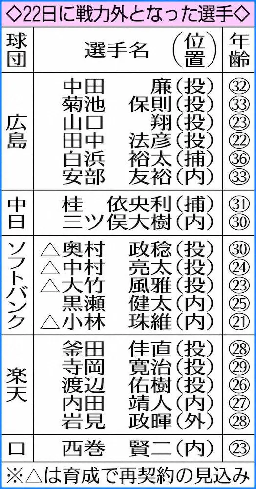 楽天・釜田 Photo by スポニチ 楽天・釜田、内田ら 5球団計19選手ら戦力外 ギャラリーで見る この記事のフォト 2022年10月23日の画像一覧 もっと見る 2022年10月23日の画像をもっと見る