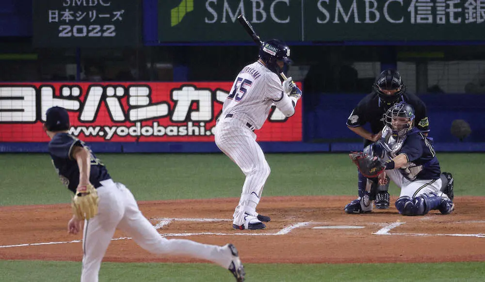 <ヤ・オ>6回、村上は見逃し三振に倒れ、悔しげな表情を浮かべる撮影・椎名 航) Photo by スポニチ ヤクルト村上が脱帽 第3打席はオリックス2番手・山崎颯の154キロ直球に見… ギャラリーで見る この記事のフォト 2022年10月23日の画像一覧 もっと見る 2022年10月23日の画像をもっと見る