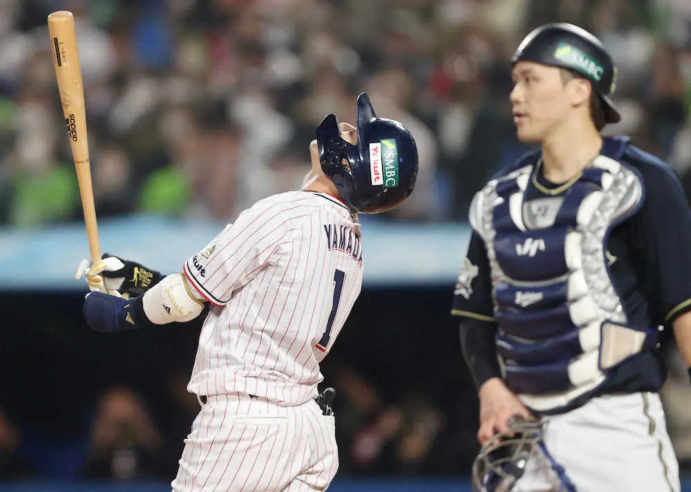 <ヤ・オ>8回、無安打の山田(右)の奥で厳しい表情の高津監督 (撮影・光山 貴大) Photo by スポニチ ヤクルト山田は第2戦も快音聞かれず 6打席に入るも5の0 4打席4三振だっ… ギャラリーで見る この記事のフォト 2022年10月23日の画像一覧 もっと見る 2022年10月23日の画像をもっと見る