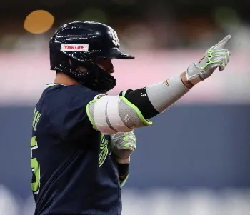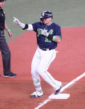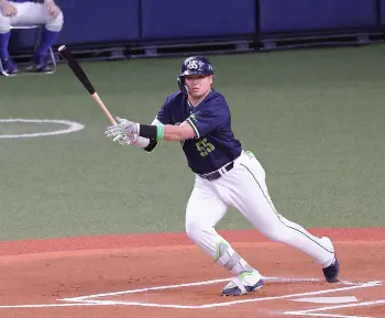 オリックス先発・宮城の前に第1打席は投ゴロ、第2打席は一ゴロ。しかし、6回の第3打席には3冠王の意地を見せつけた。初球は140キロ直球を冷静に見送り1ボール。続く2球目の外角寄り143キロ直球をはじき返し、左翼線を破る二塁打とした。