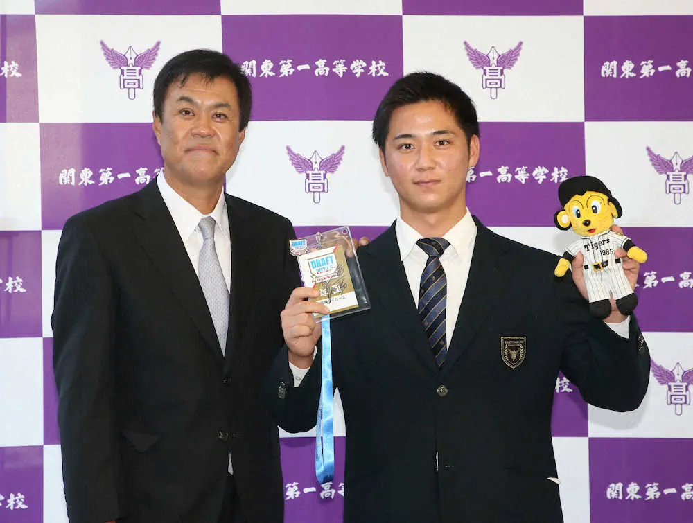 阪神ドラ3・井坪が指名あいさつで抱負「打撃、走塁、守備も見て」高校通算32本塁打、50メートル6秒0