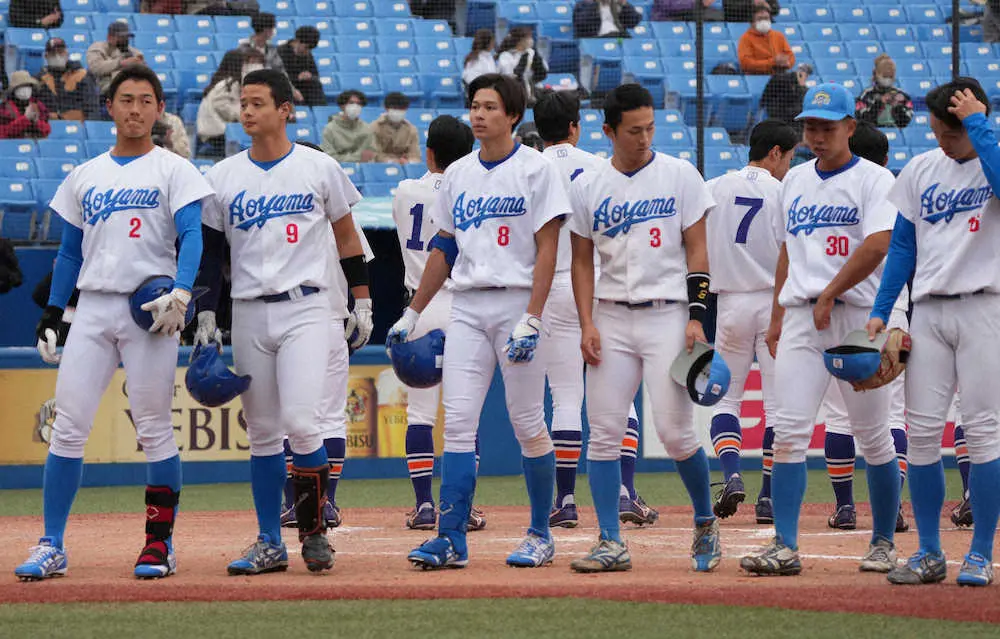 <青学大・駒大>駒大に敗れた青学大ナイン(撮影・郡司 修)