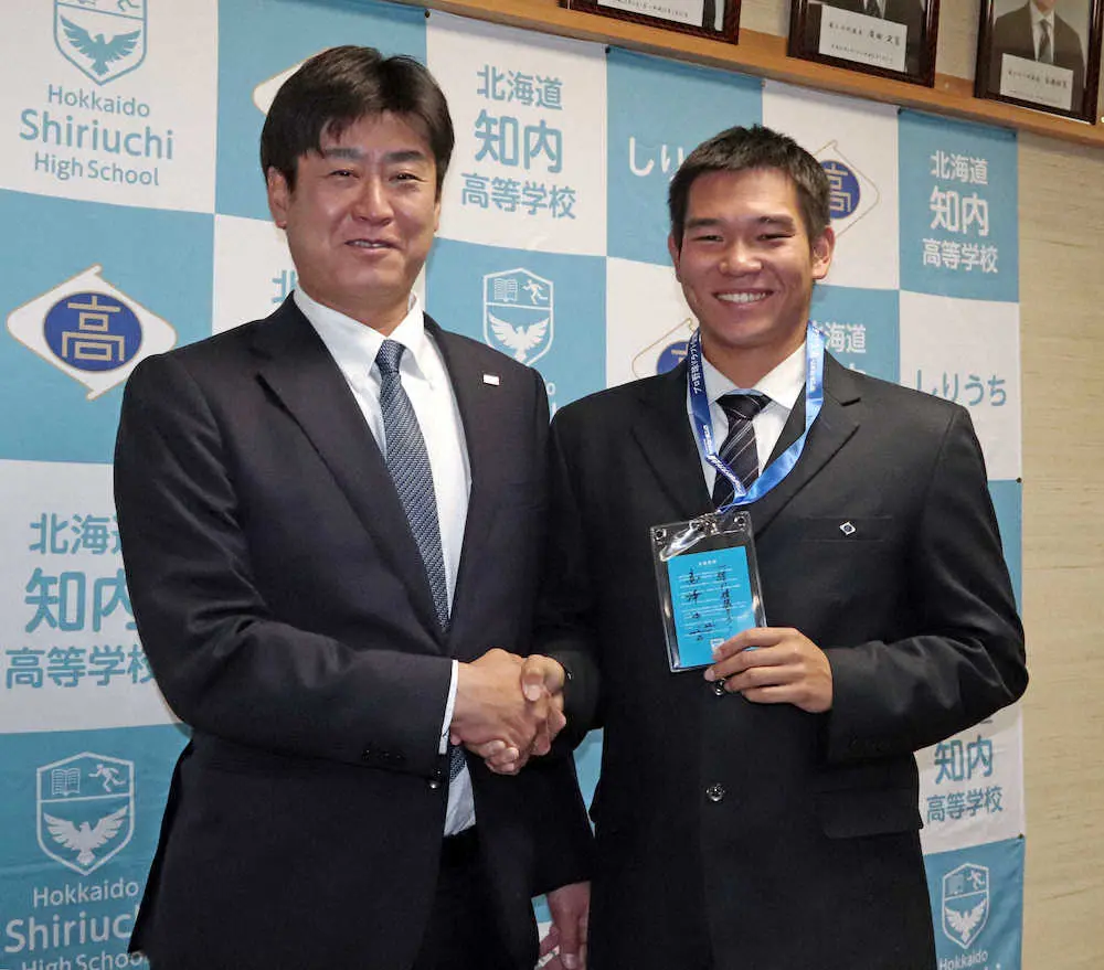 奥尻島出身では76年ドラフト1位で阪急入りした通算165勝の佐藤義則以来46年ぶりの指名。小学生時の佐藤氏の野球教室は低学年で参加できずもスタンドから見た光景は覚えている。「一緒に頑張ろう!」という高津監督直筆メッセージ入りのドラフト会議のIDパスも手渡され「期待に応える投手になりたい」と誓った。