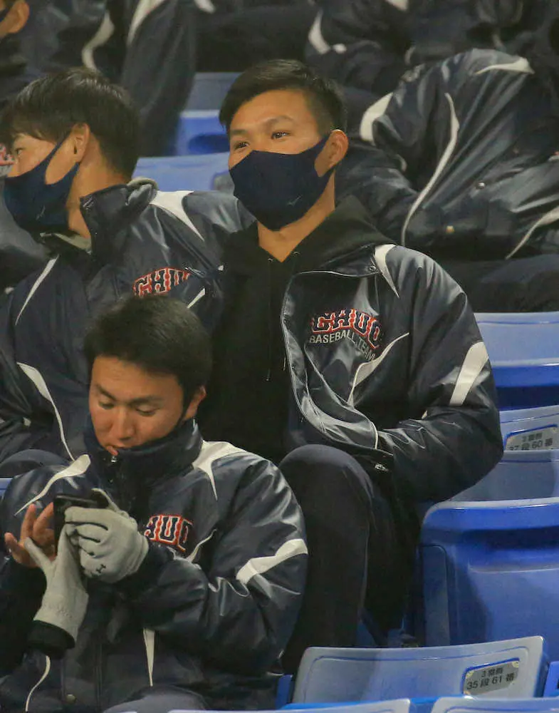 <国学院大・亜大>観戦する中大・森下(撮影・篠原岳夫)