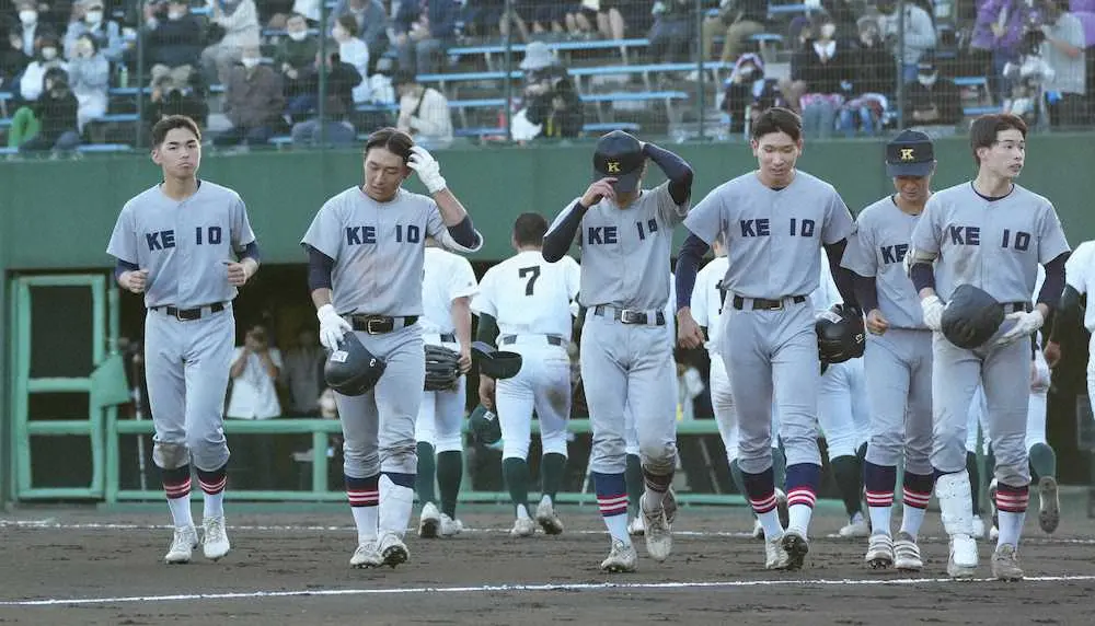 来春選抜の重要な参考資料となる秋季高校野球関東大会は29日、大宮公園で準決勝2試合が行われ、慶応(神奈川2位)は専大松戸(千葉1位)に延長10回の末、3―5で敗れた。