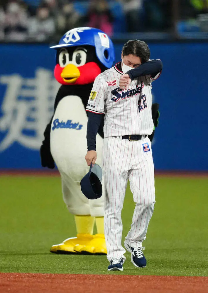 2年連続セ・リーグ最下位からチームを2年連続リーグ制覇に導くも、日本一を逃したヤクルトの高津臣吾監督(53)は試合後、目を真っ赤にして男泣き。最後まで諦めずに応援してくれたヤクルトファンの前にナインとともに姿を現し、感謝をこめて無言で挨拶すると、人目もはばからず涙を流した。