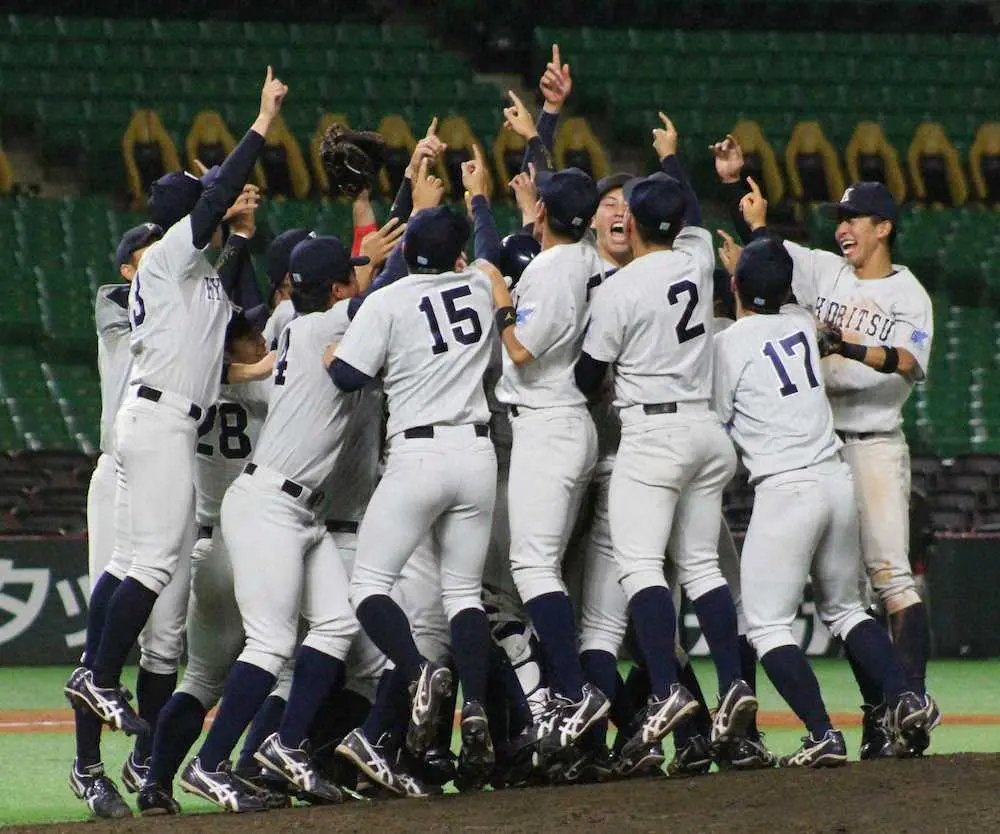ペイペイドームで九共大ナインが歓喜に浸った。応援席からの後押しに応えたのは1年生エースの稲川。7回1/31失点の好投で6月の全日本大学野球選手権に続き全国大会出場を決め「うれしい気持ちでいっぱいです」と話した。相手は予選トーナメントから勝ち上がってきた同じ福岡六大学リーグのライバル、九産大。「下克上(狙い)で来るから返り討ちにしてやろう」と主将の梁瀬慶次郎(3年)を中心に気合十分で臨んだ。
