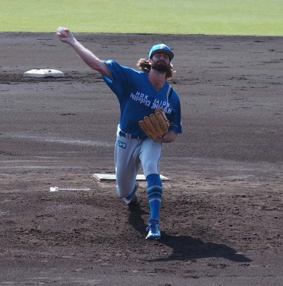 右肘じん帯炎症のため今季支配下選手で唯一1軍出場がなかった日本ハムの来日1年目右腕ガントが、フェニックス・リーグの四国IL選抜戦で対外試合に初登板した。
