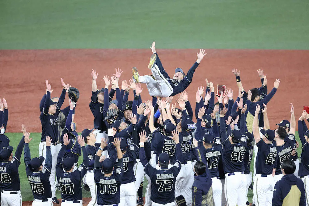 「SMBC日本シリーズ2022」の第7戦は30日、神宮球場で行われ、オリックスが5―4で勝利。96年以来、26年ぶり5度目の日本一に輝いた。昨年の雪辱を果たした中嶋聡監督(53)は神宮の夜空に5度舞い、喜びを爆発。初回に先頭の太田椋内野手(21)がシリーズ史上初の初球先頭打者弾で主導権を奪うと、5回にも4点を追加。先発の宮城大弥投手(21)は5回無失点の好投でシリーズ球団最年少勝利となった。