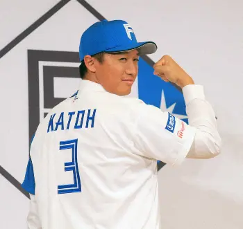 新庄剛志監督(50)とともに会見に臨んだ加藤豪は、ポジションの希望を聞かれ「4番キャッチャーでお願いします」と即答。新庄監督は「こういうボケも言えるんだね~」と感心。会見場は笑いに包まれた。