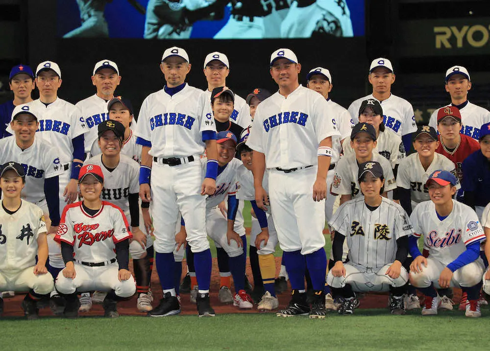 マリナーズ会長付特別補佐兼インストラクターのイチロー氏が率いる草野球チーム「KOBE CHIBEN」と「高校野球女子選抜」の試合が3日、東京ドームで行われた。松坂大輔氏(本紙評論家)が初参加し、昨年の対戦でも完投したイチロー氏は1失点で完投勝利を挙げ、大いに盛り上がった。