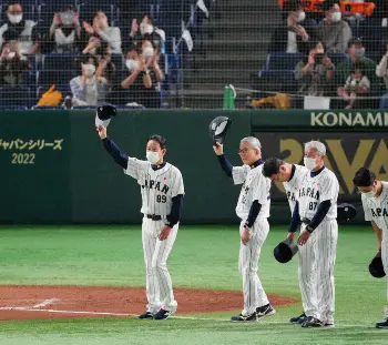 最後は左打席に入ったが「きのうの段階では最後は右でやろうかなって思ったんですけど、プロで14年やってきて、スイッチヒッターで最初から最後まで駆け抜けようという思いがあったので、最後の最後まで、右ピッチャーの時は左に立って終わろうと思っていました」と杉谷。涙を流しながらベンチで出迎えられたことには「ダサかったですね。笑顔で終わりたいなと思っていたので。ただ、このような場を設けて頂いた日本代表の皆さま、関係者の皆さま、また、ファイターズの皆さまに感謝の気持ちで一杯だったので、凡退した後にいろんな思いがこみ上げてきまして。大泣きしていました」と試合後は笑顔で話していた。