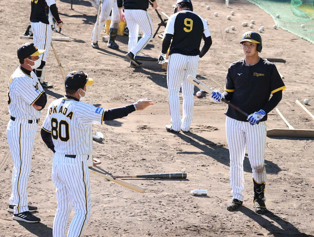 大砲候補として楽しみにしていた打撃が精彩を欠き、特に外角球への対応が気になった。「(打球が)滑るな。スライスが多いよ。だから、反対方向に伸びん。ライト前に軽打でなく、ライトオーバーを打たなあかん選手やから」。好例として出したのが現役時代に中軸をともに担い、3度の本塁打王など通算349発を誇った掛布雅之氏だ。