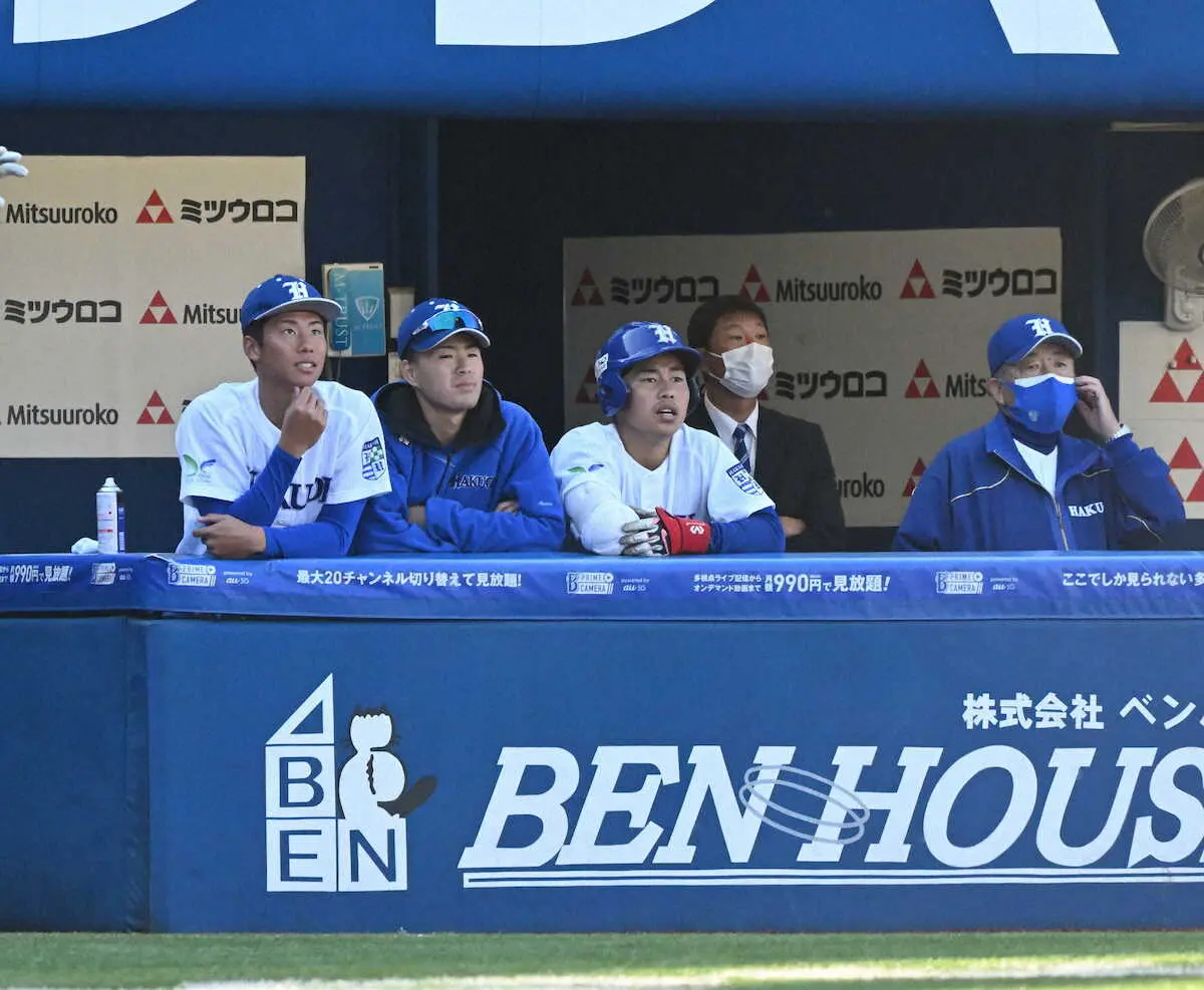 オリックスにドラフト1位指名された白鴎大の最速151キロ左腕・曽谷龍平投手(4年)に「寝違え」による首痛のため予定されていた先発登板を回避。ベンチで観戦し、救援登板することなくチームは国際武道大に0―4で敗れ「後輩達の良いピッチャーが頑張ってくれた。自分は情けない」と肩を落とした。