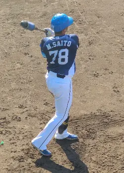 移籍直後とありユニホームは背番号78の斉藤誠から拝借。ヘルメットは昨年までの在籍中に使用していた背番号「31」のものをかぶった。
