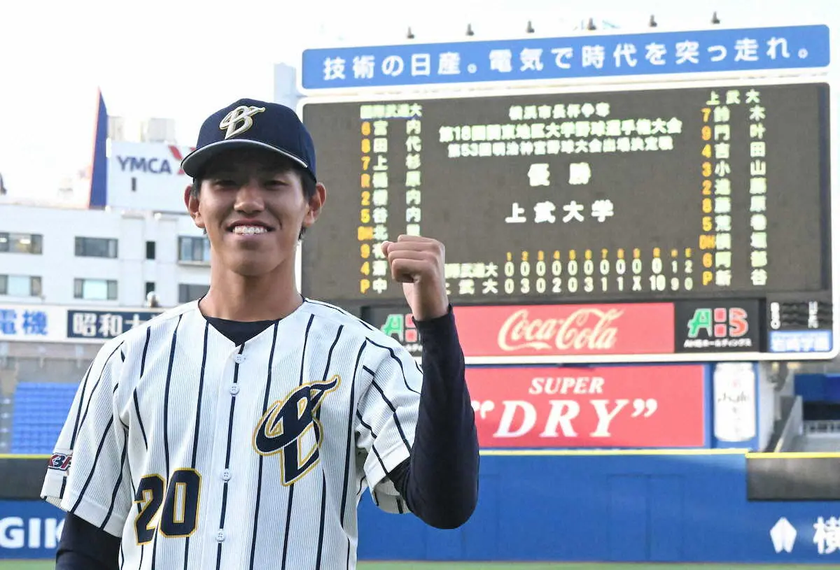 上位2校が明治神宮大会(18日開幕、神宮)に出場する関東地区大学野球選手権の決勝が10日、行われ、上武大が国際武道大を10―0で下し、14年以来8年ぶり5度目の優勝を飾った。最速145キロ左腕・山田俊介投手(1年)は先発で3回無安打無失点。九州学院の先輩でもあるヤクルト・村上の本拠地でもある神宮で活躍を誓った。