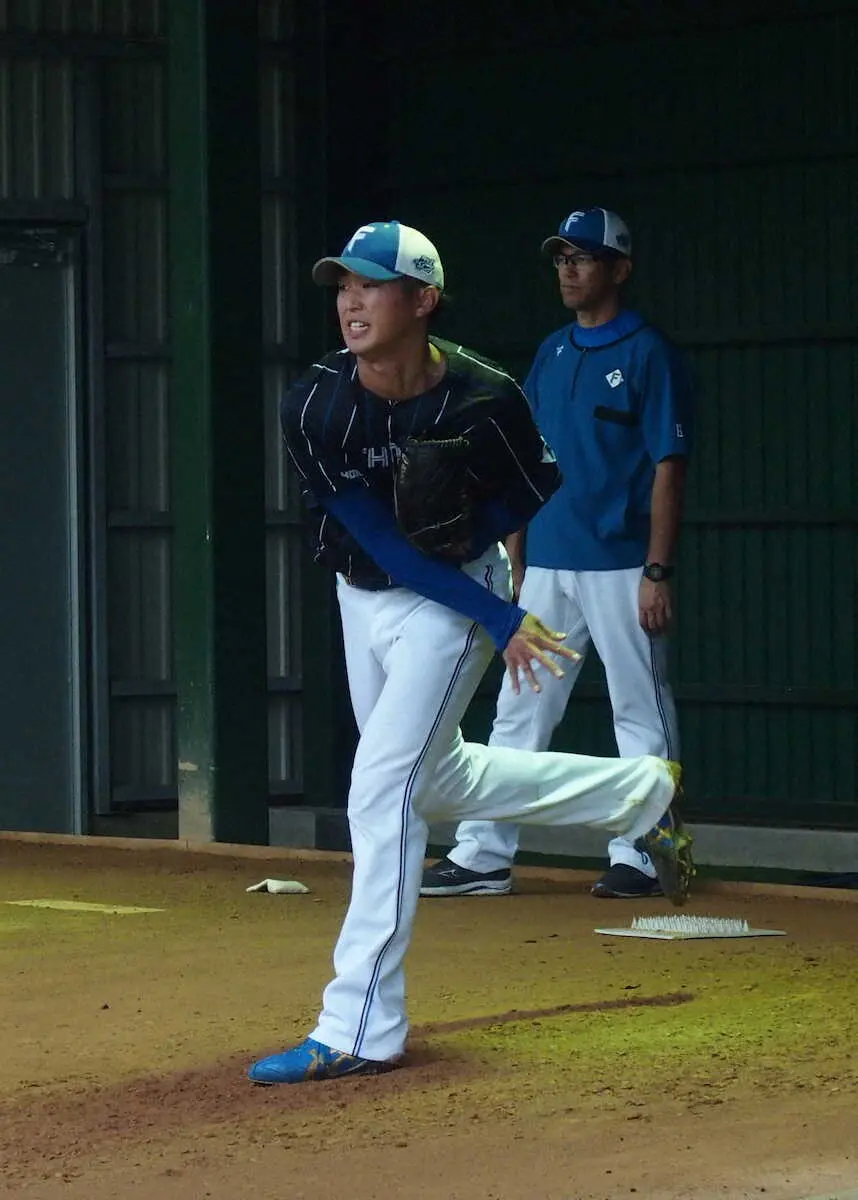 花巻東から20年育成ドラフト1位で入団した身長1メートル88の最速151キロ右腕は、高校の先輩のエンゼルス・大谷を思わせるスケール感。今季は2軍で22試合に登板して1勝3敗、防御率2・84と飛躍のきっかけをつかんだ。指揮官は相手打者のタイミングを外すためにクイックや2段モーションを交互に入れる投球を投手陣に推奨している。2段モーションもこの日初挑戦した右腕は「ここから練習して、スーパークイックが生きるように頑張ります」と意気込んだ。(東尾 洋樹)