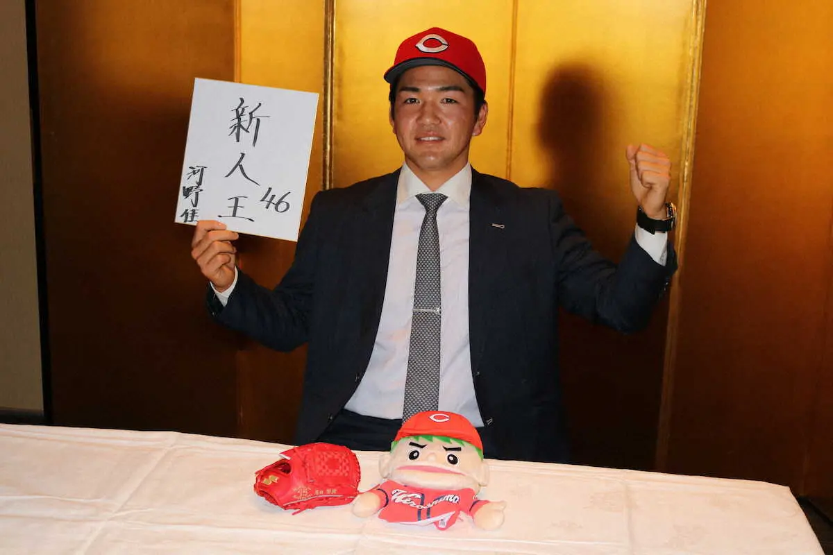 この日同席した担当の鞘師スカウトからは、憧れの選手として挙げている球団OBの黒田博樹氏の「200勝記念ミニチュアグラブ」をプレゼントされ、「“男気”という言葉は黒田さんから来ているのかなと思う。ああいう投手になりたい。(記念グラブは)飾っておきます」と笑顔を見せた。