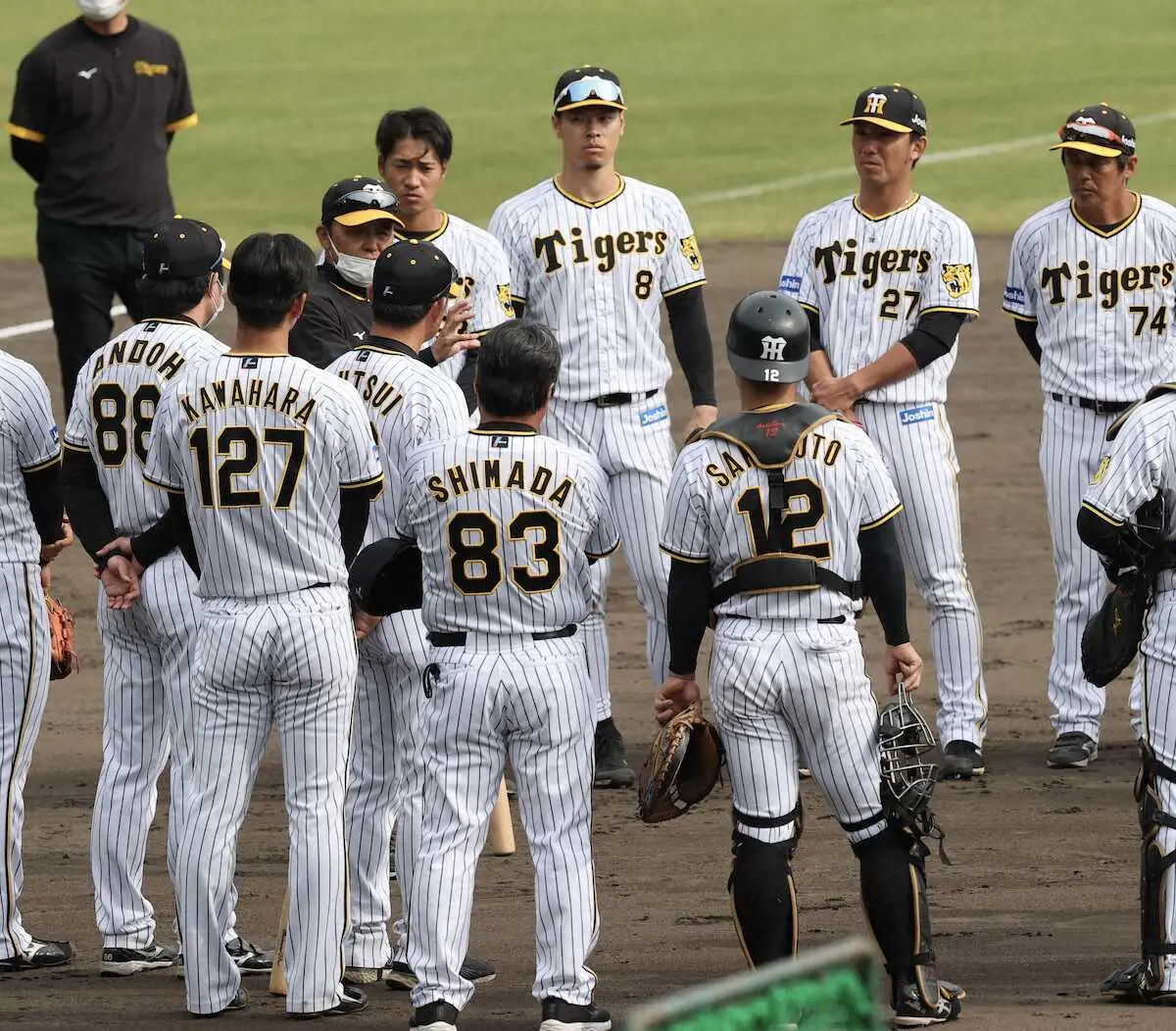 阪神の秋季安芸キャンプ第4クール3日目の17日、午前中に行われたケースノック終了後に、岡田彰布監督が緊急に円陣を招集。野手を集めて、守備についての意識の徹底を求める一幕があった。