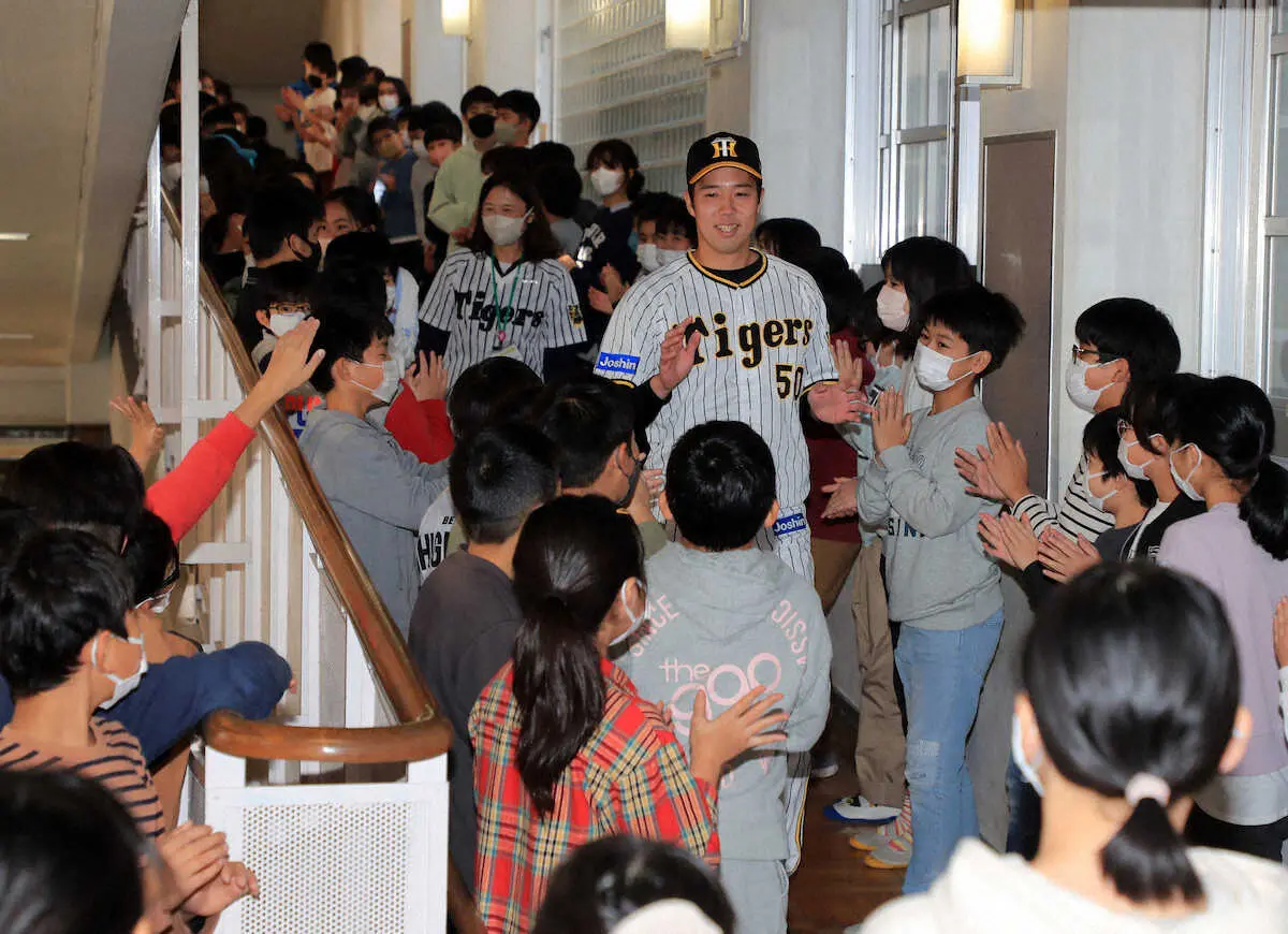 阪神・青柳晃洋投手(28)が17日、社会貢献活動の一環で地元の神奈川県横浜市鶴見区の岸谷小、上寺尾小を訪問し、本などの寄贈を行った。児童とはキャッチボールや講演会などで交流した後、来季は公約達成に再挑戦することを宣言した。昨オフは「開幕投手」、「初の15勝」、「2年連続最多勝」の目標を掲げたが、開幕投手と15勝は果たせなかった。プロ8年目の来季はすべてを達成し、凱旋する決意だ。