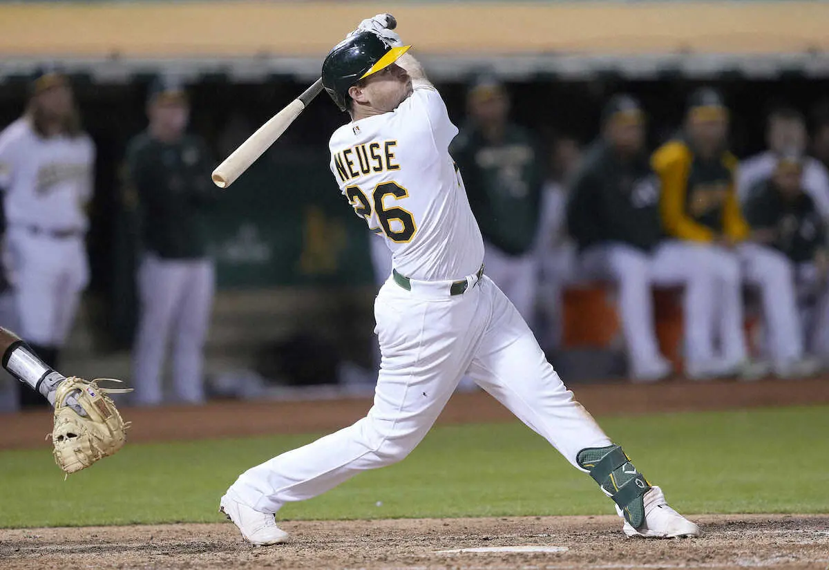 ◇シェルドン・ノイジー 1994年12月10日生まれ、米テキサス州出身の27歳。高校時代の13年ドラフト38巡目(全体1150位)のレンジャーズ指名を拒否。オクラホマ大で遊撃手として活躍。16年ドラフト2巡目(全体58位)でナショナルズ入団。17年にトレードでアスレチックス移籍。19年メジャーデビュー。21年のドジャースを経て、今季は再びアスレチックスでプレー。本職の二、三塁をはじめ内野4ポジションに外野もこなす。1メートル83、105キロ。右投げ右打ち。