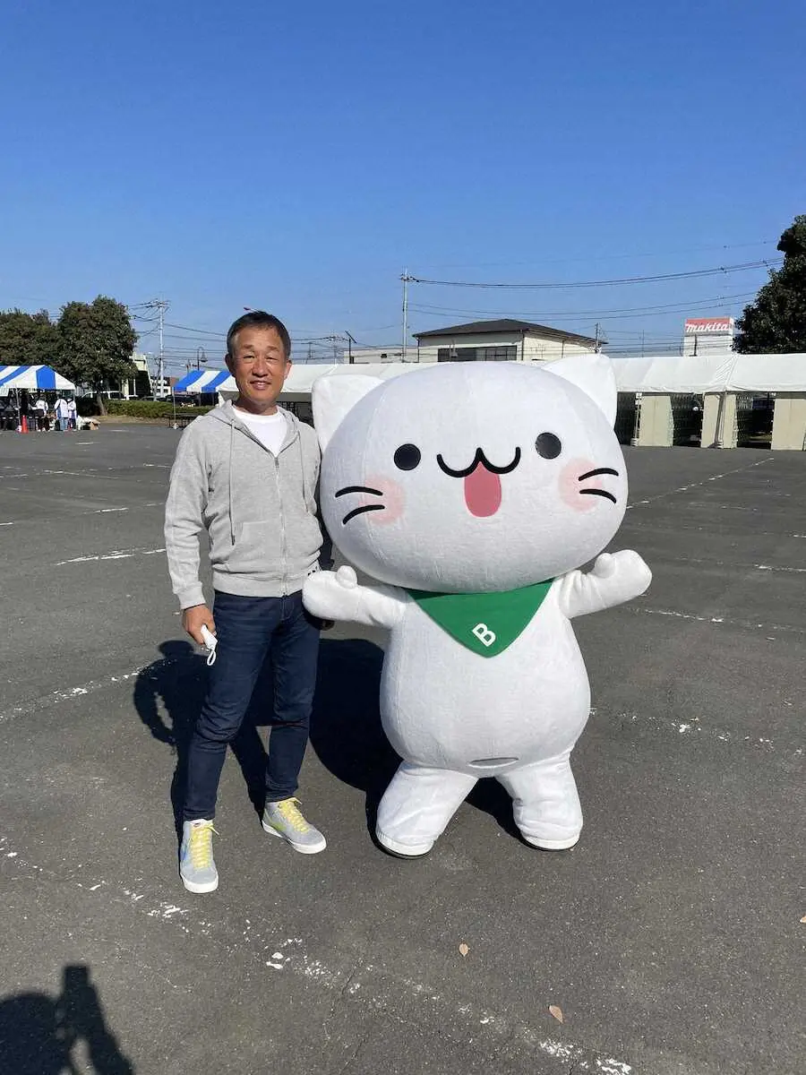 西武・辻前監督「1年間のお礼が言えて良かったにゃ」人気マスコット「べるーにゃ」と2ショット