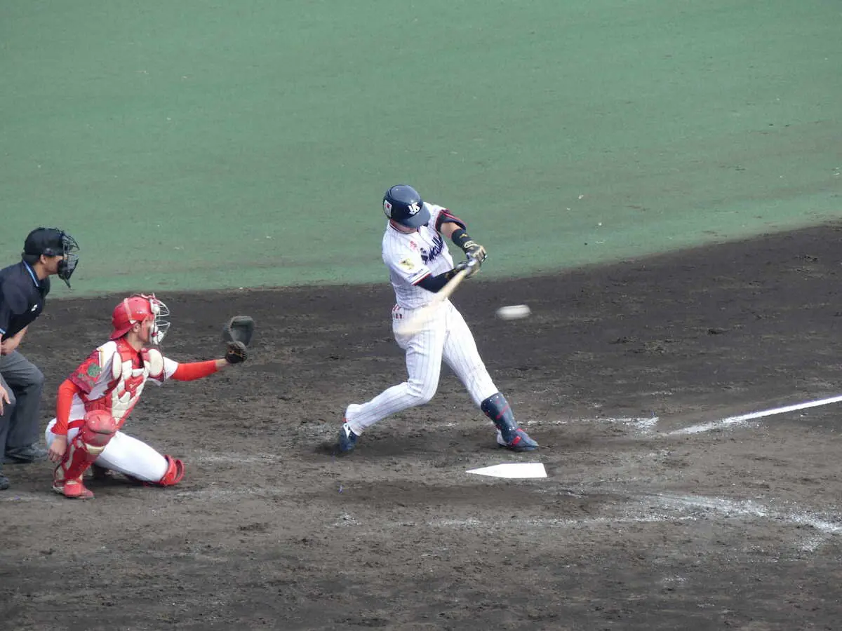 12日の四国IL・愛媛戦から2戦連発。「あんまり押し込めてはなかったんですけど、意外と打球が伸びていったので、すごくいい打球だったかなと思います」と手応えを口にした。