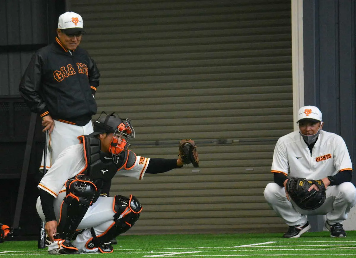 巨人は内野が本職の香月が宮崎秋季キャンプで捕手練習に取り組んだ。