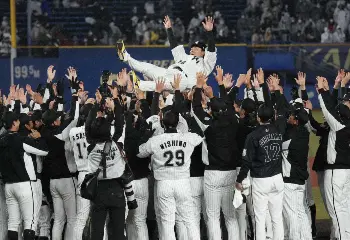 ロッテ松永&田中靖がナインの手で胴上げ ファン感で引退セレモニー