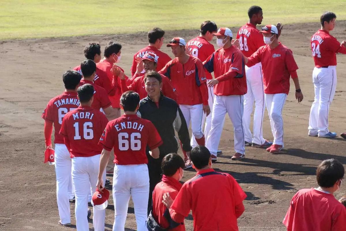 広島・新井監督「100点満点」充実の秋季キャンプ打ち上げ 一体感示す全員でのハイタッチ