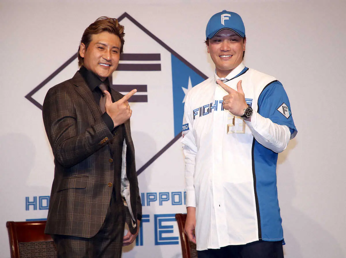 来季は東海大四(現東海大札幌)時代以来の北海道でのプレーとなる。3年総額3億円の評価で故郷に帰ってきた千歳市出身の扇の要は、契約書にサインをした時を回想して「かなり体が熱くなりました」と告白。「雲の上の存在」という新庄監督の隣で何度も笑顔が弾けた。