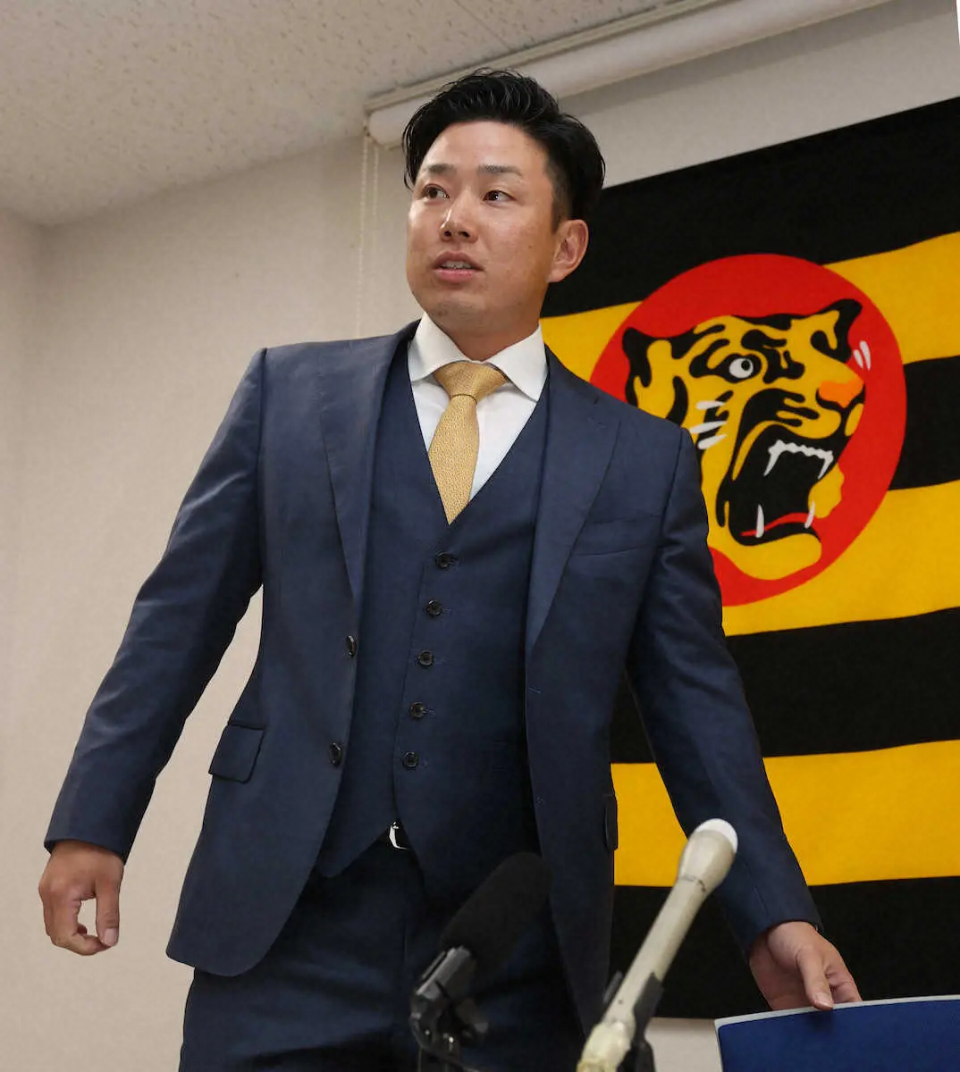 阪神の糸原健斗内野手(30)が25日、西宮市内の球団事務所で契約更改に臨み100万円アップの年俸8000万円(金額は推定)でサインした。